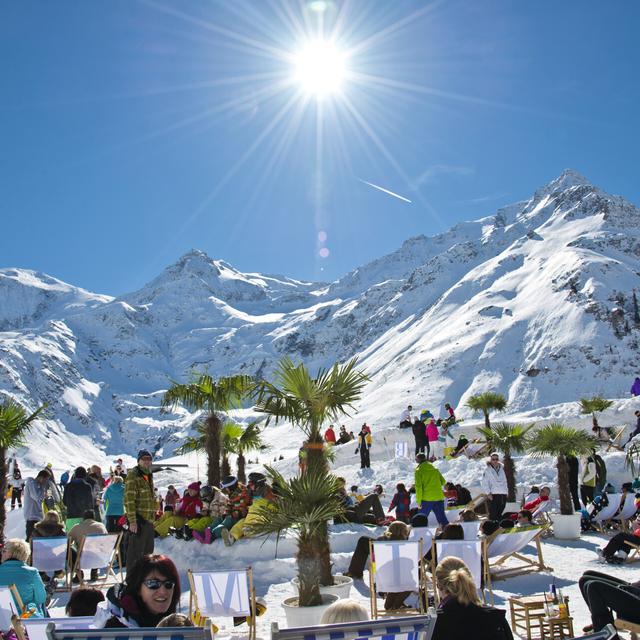 I mars er det tid for populære Palmen auf den Almen i Sportgastein. Den klare blå himmelen og de omkringliggende alpetoppene blir sammen med palmer, musikk og fluktstoler en oase midt i Alpene. Her samles soltilbedere og glade skiløpere for å nyte drinker og musikk midt i bakken.