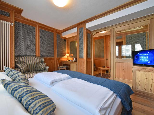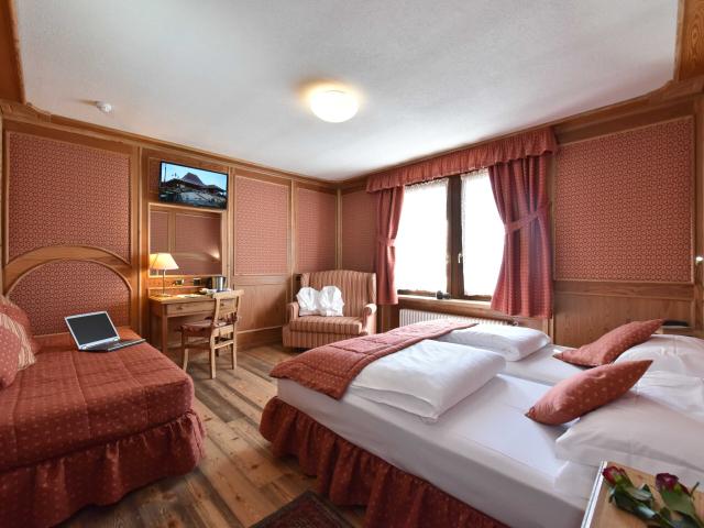Familierom for 4 personer med dobbeltseng og to ekstra senger, bad/dusj og WC.