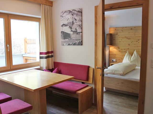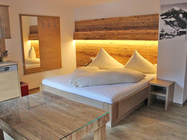 Toromsleilighet "Schattberg" med soverom, stue med extra seng, kjøkken, bad/dusj og WC.