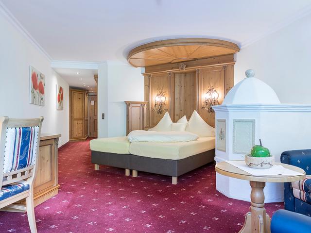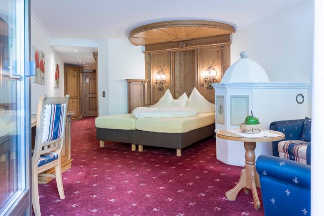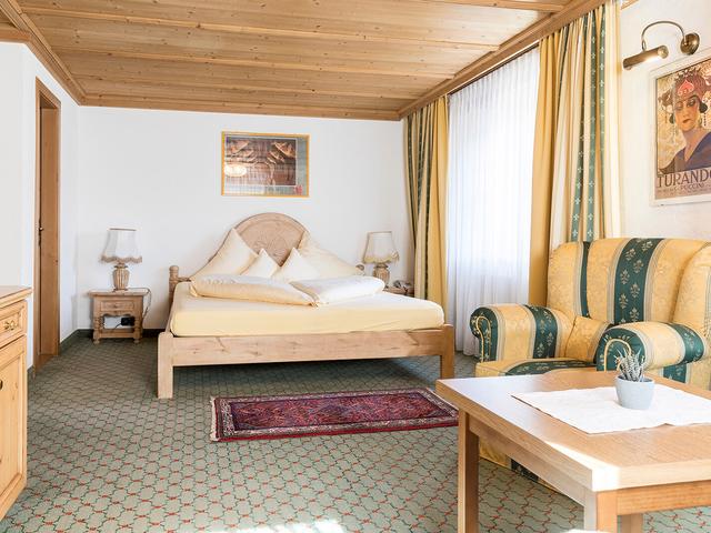 Juniorsuite "Galzig" med kombinert soverom og stue med ekstra senger, bad/dusj, WC og balkong.